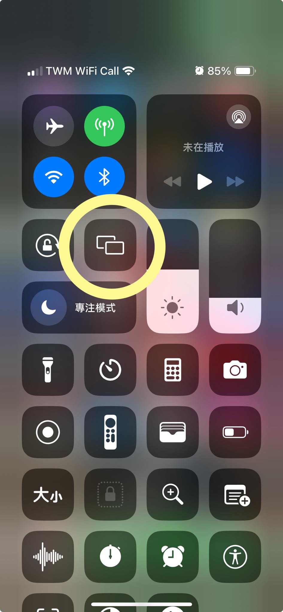 開啟控制中心,選擇「螢幕鏡像輸出」